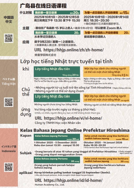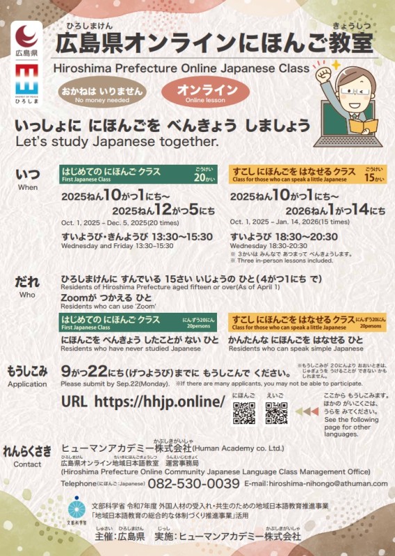 Vai começar “Aulas de Japonês Online” na província de Hiroshima.