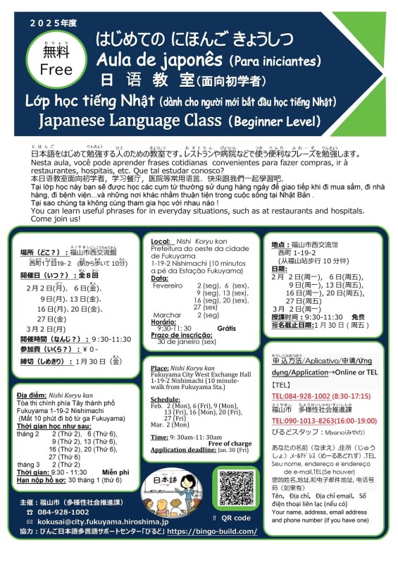 Realizaremos um curso de japonês para aqueles que estão estudando o idioma pela primeira vez.